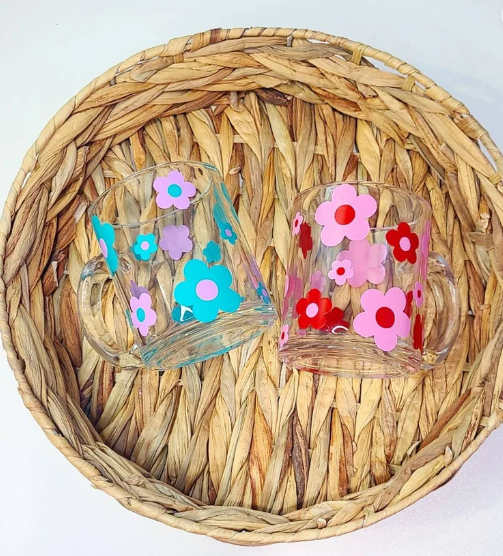 Taza de café de cristal con forma de margarita
