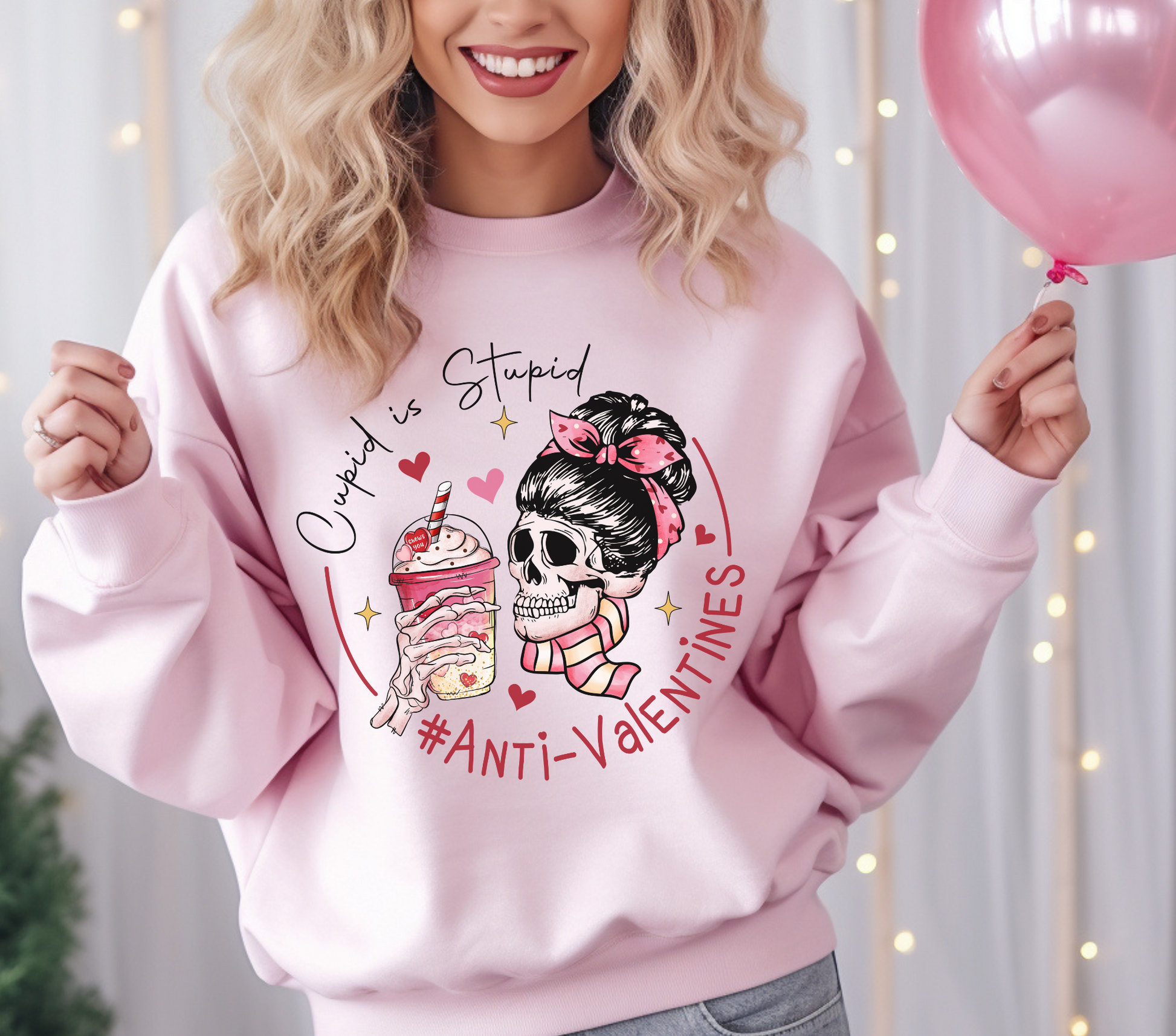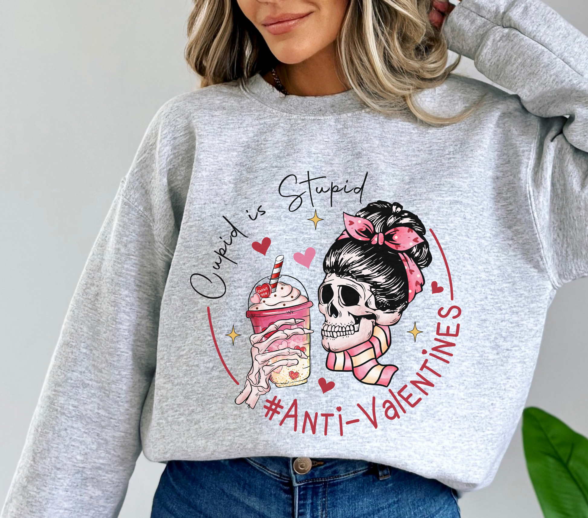 Anti-Valentine's sweatshirt, humorous graphic sweatshirt, Cupid is stupid apparel, casual winter clothing, unique Valentine's gift, witty fashion top, comfortable stylish sweatshirt, anti-love clothing, funny Valentine's day outfit, gift for singles.