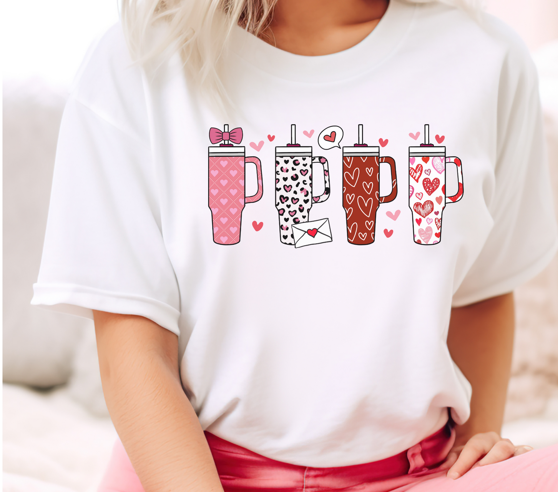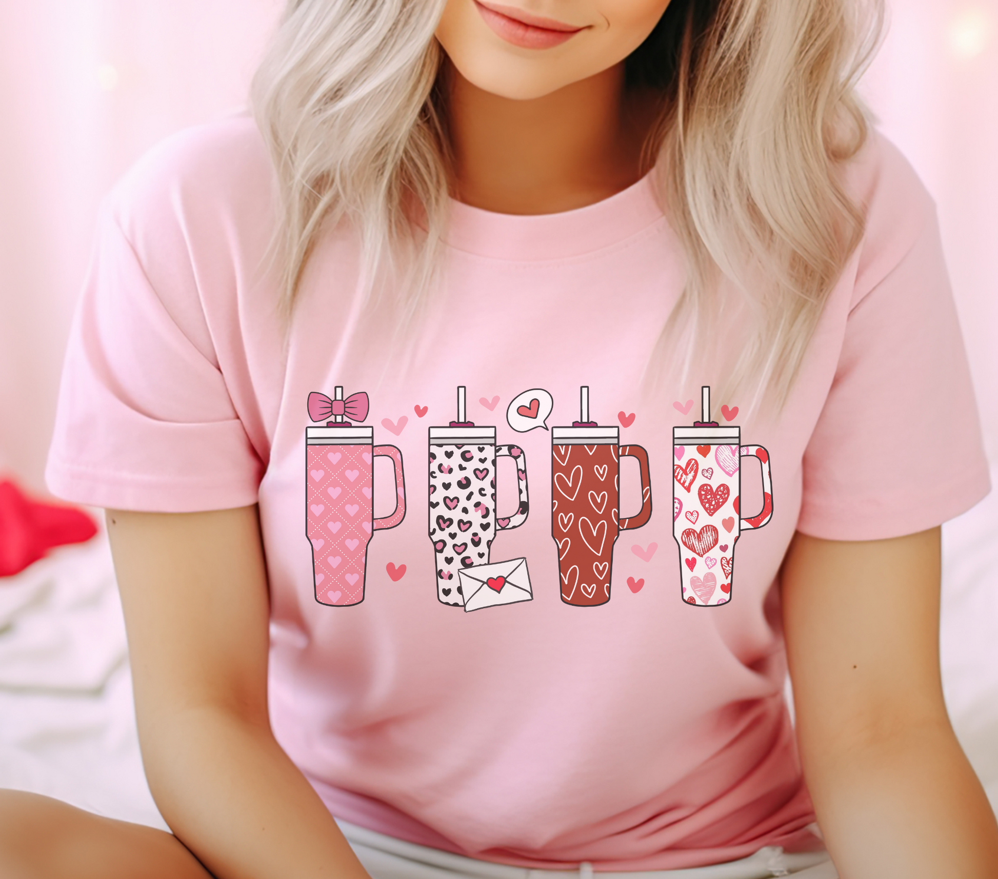 💘 Cute Tumbler Designs: Adorned with various heart-themed tumbler graphics, this shirt captures the essence of Valentine's Day in a fun and fashionable way.